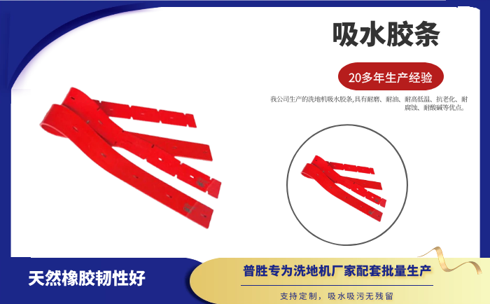 洗地機吸水膠條,具有耐磨、耐油、耐高低溫、抗老化、耐腐蝕、耐酸堿等優點。